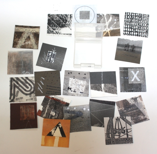 20 small collages, prints, paintings by